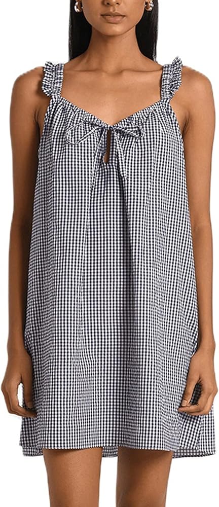 • Material: Polyester blend, women babydoll tank short dress, ruffle shift mini dress, frilly short tunic dress are soft touching, comfy, skin friendly, breathable, lightweight.