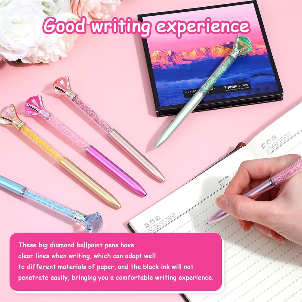 • 【Exquisite Design & Smooth Writing】Each pen with diamonds on top features a large, sparkling crystal gem securely set on a sleek barrel. The 1.0mm black ink refill writes smoothly and clearly on various paper types without smudging or bleeding, providing a comfortable and reliable writing experience for notes, planning, or signatures.