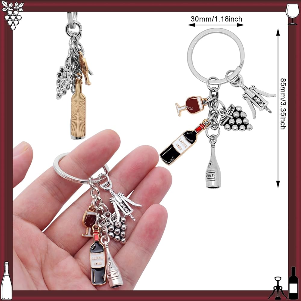 • MEANINGFUL GIFT: Consisting of bottles, glasses and grapes pendant, both a stylish keychain and a portable wine decoration, perfect for Mother's Day or a friend's party as a novelty gift.