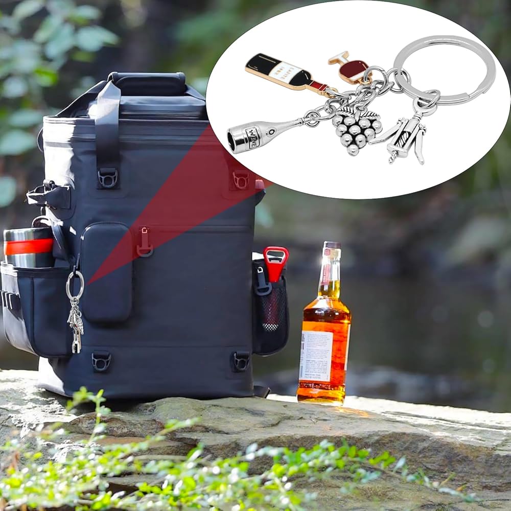 8Pcs Wine Keychain Alloy Wine Themed Keyrings Wine Bottle Wine Glass Bottle Opener Grape Charm Keychains for Women Men Gift or Wine Lovers