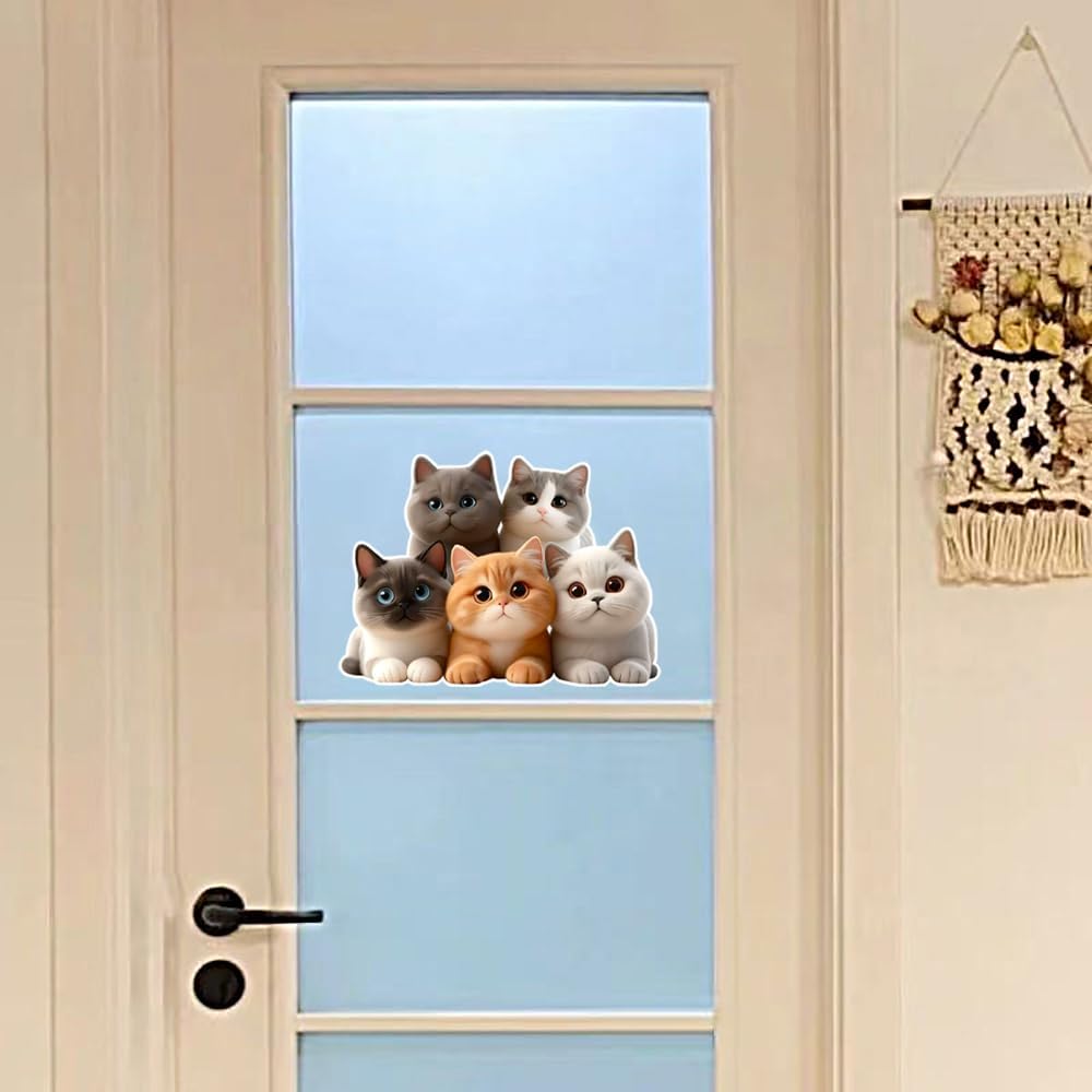 Transform any smooth surface into an adorable feline showcase with these charming cat vinyl decals. Featuring five irresistibly cute kittens with expressive eyes and endearing poses, this waterproof sticker brings warmth and personality to your living space. The design showcases a delightful group of kittens in various colors including gray, orange, and white, all huddled together in an enchanting arrangement that captures the playful spirit of these beloved pets. These removable stickers are perfect for personalizing bedrooms, nurseries, living rooms, or any space that could use a touch of whimsy. The waterproof construction ensures durability and longevity, making them suitable for various applications beyond walls, including furniture, cabinets, laptops, and more. Easy to apply and remove without leaving residue, these decals offer a commitment-free way to refresh your decor. Whether you're a cat lover looking to celebrate your passion or simply seeking an eye-catching decorative element, this five-kitten design adds instant charm and character to any room.