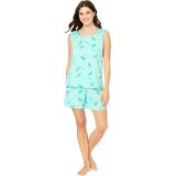 A light and lovely PJ set with a matching scoop neck tank top and pull-on elastic-waist shorts. Tank top is tagless and designed with a satintrim scoop neckline. 27" length. Easy pull-on elastic-waist knit shorts have a 5" inseam and allow you to relax comfortably.