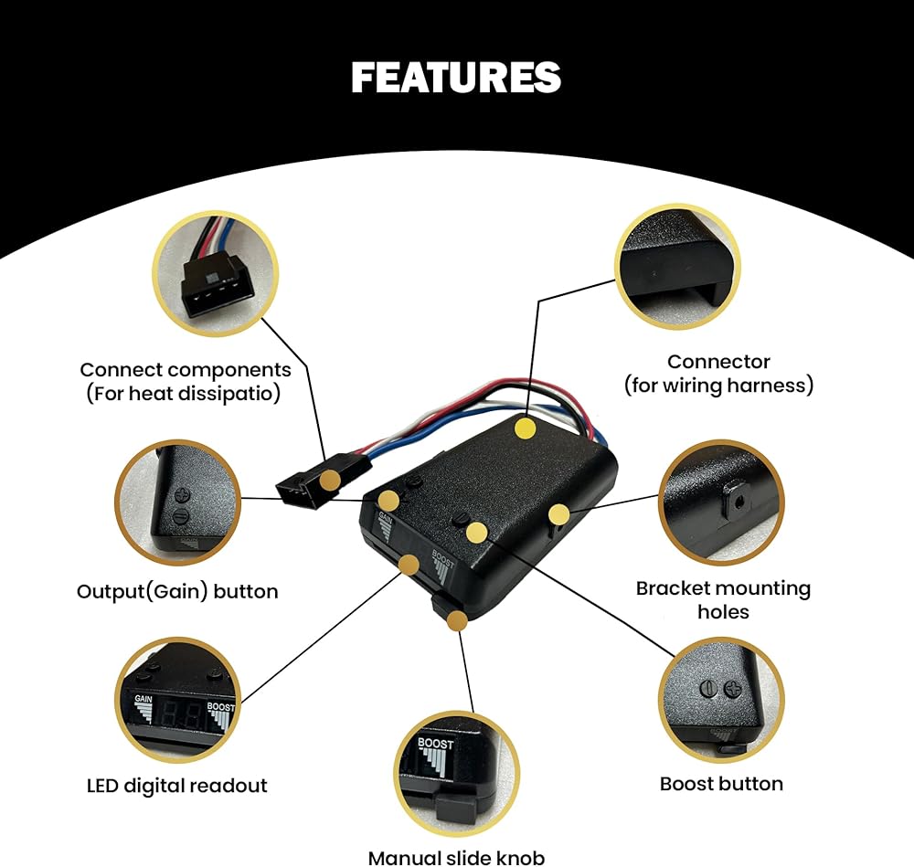 [Advantages of RIZZ-MAN 8508211 brake controllers]: RIZZ-MAN 8508211 brake controllers allow the driver to control the trailer's brakes, helping to reduce speed and improve stability when the tow vehicle slows down or stops. This state of the art brake controller primarily uses sensor technology which provides stability and smoothness in braking response especially in any stopping situation.