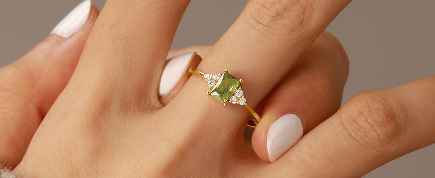 Size and color options: Emerald green gold ring size from US size 5 to 8, please choose the exact size before purchasing. Besides, we provide you two choices of color silver and gold, you can choose the color you prefer.