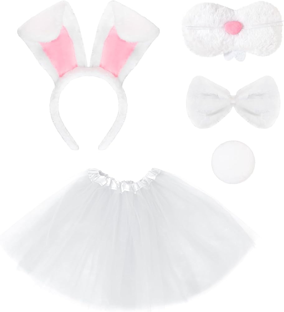 • Complete Costume Set: Transform into an enchanting bunny with our 5pcs white plush bunny costume sets, featuring soft white rabbit ears headband, fluffy tail, playful nose clip, dainty bowtie, and tutu skirt—all crafted from premium, lightweight materials for comfort and durability during extended wear