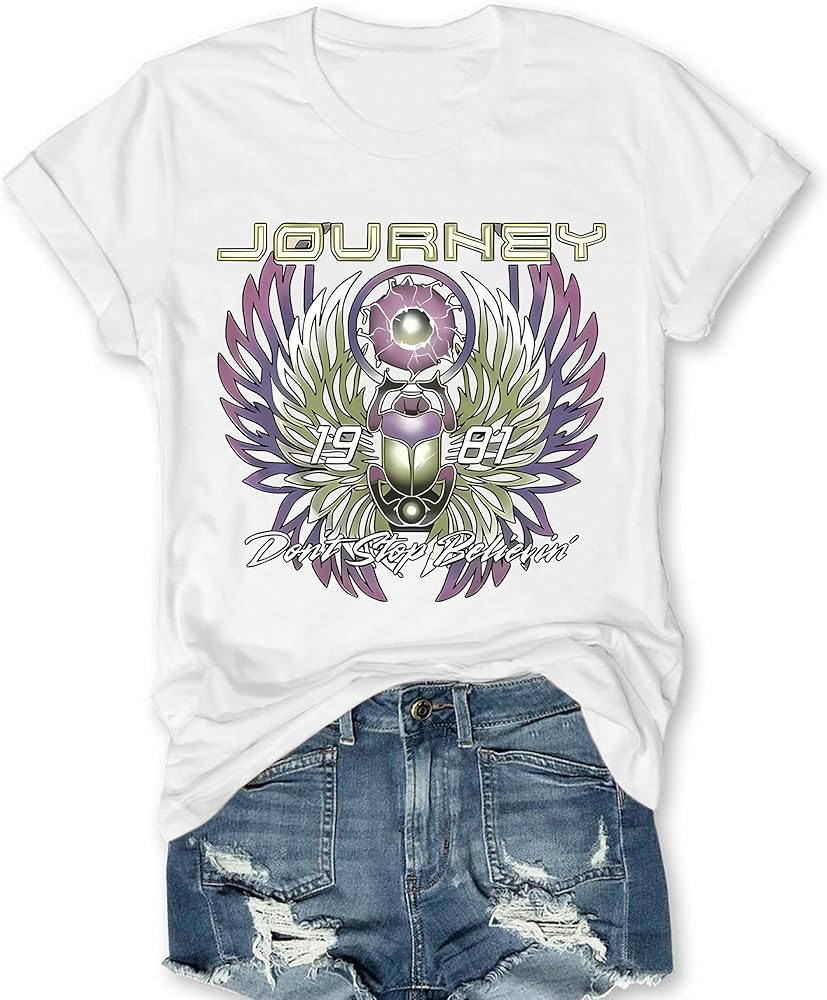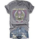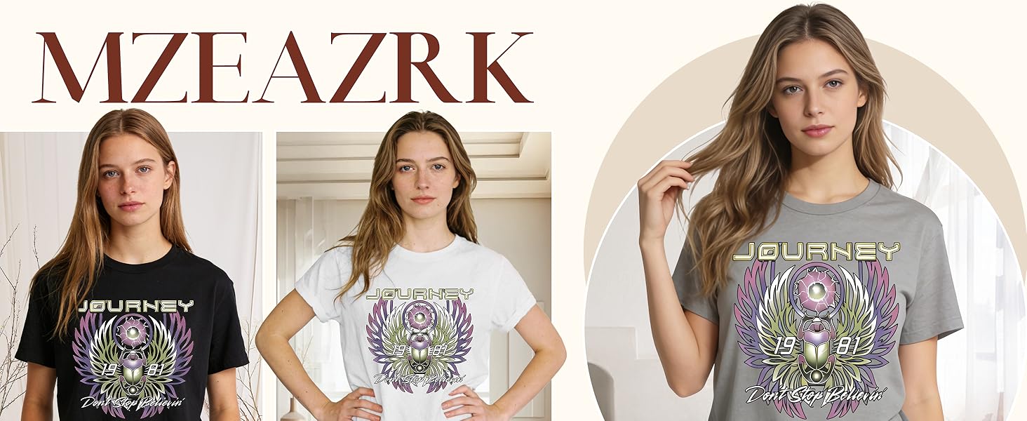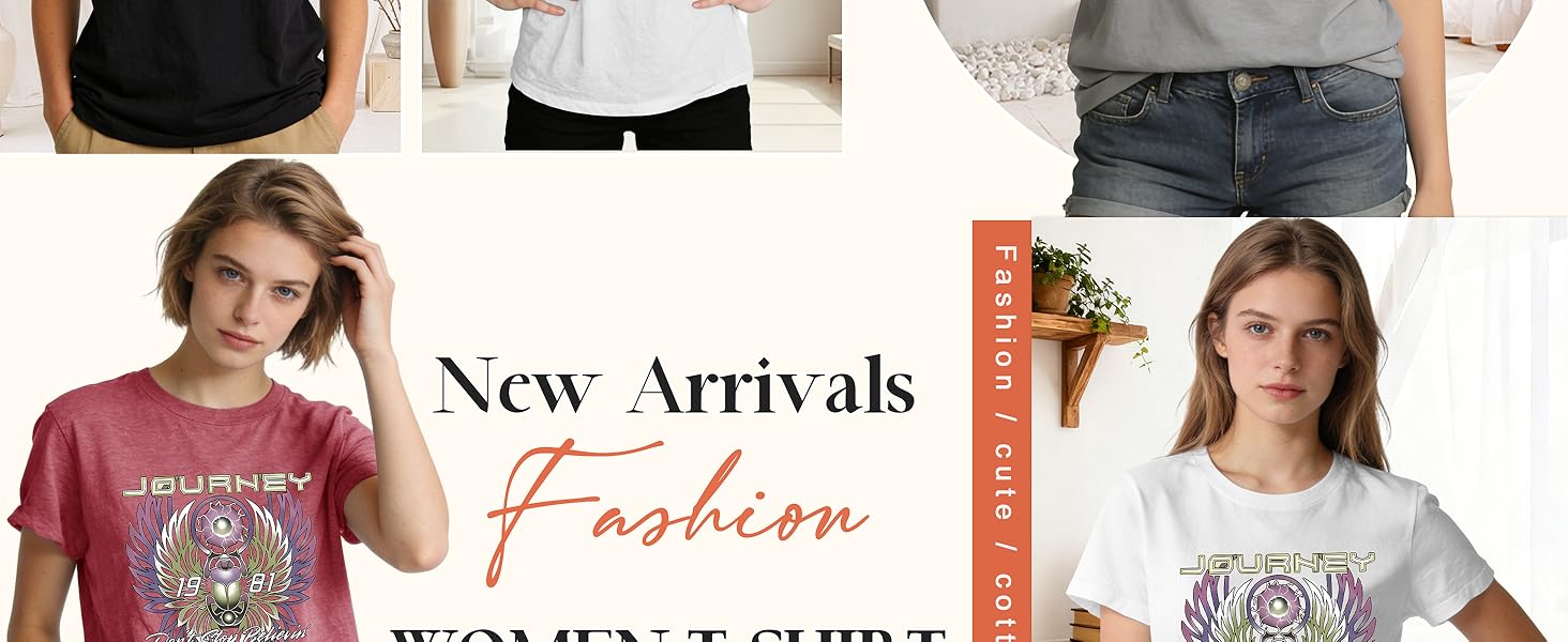 Material:Cotton blend;Skin-friendly, women journey t shirt super soft and comfortable to wear.,soft poly cotton fabric that gently drapes around your figure.Support hand wash and machine wash. Please wash with cold water, do not dry clean or bleach, not dry flat.