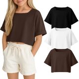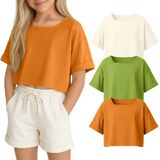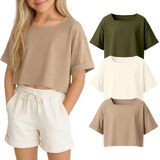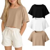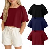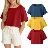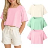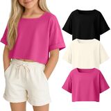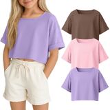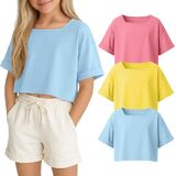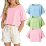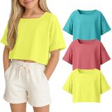 Our girls' summer cute crop tops are designed in solid colors with bright and vivid hues. They can be easily matched with various clothes and are very suitable for dance workout and summer leisure activities.
