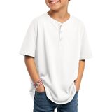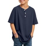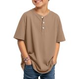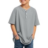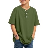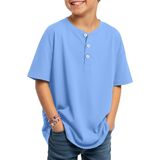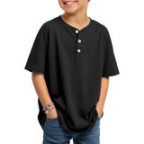 Henley Neck: the Henley neck of this boy's casual shirt gives it a casual and stylish look; The 3 real buttons add practicality; The dropped shoulder design allows for movement during lifting, stretching, and other activities, suitable for active boys