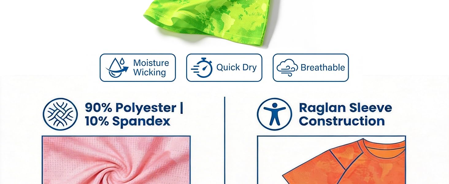 Breathable Quick-Dry Tech : Advanced moisture-wicking tech pulls sweat away in seconds. Keeps active boys fresh and cool during PE classes, soccer practice, or hot summer adventures.