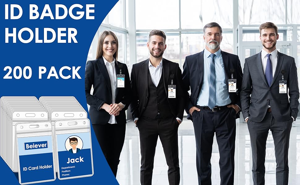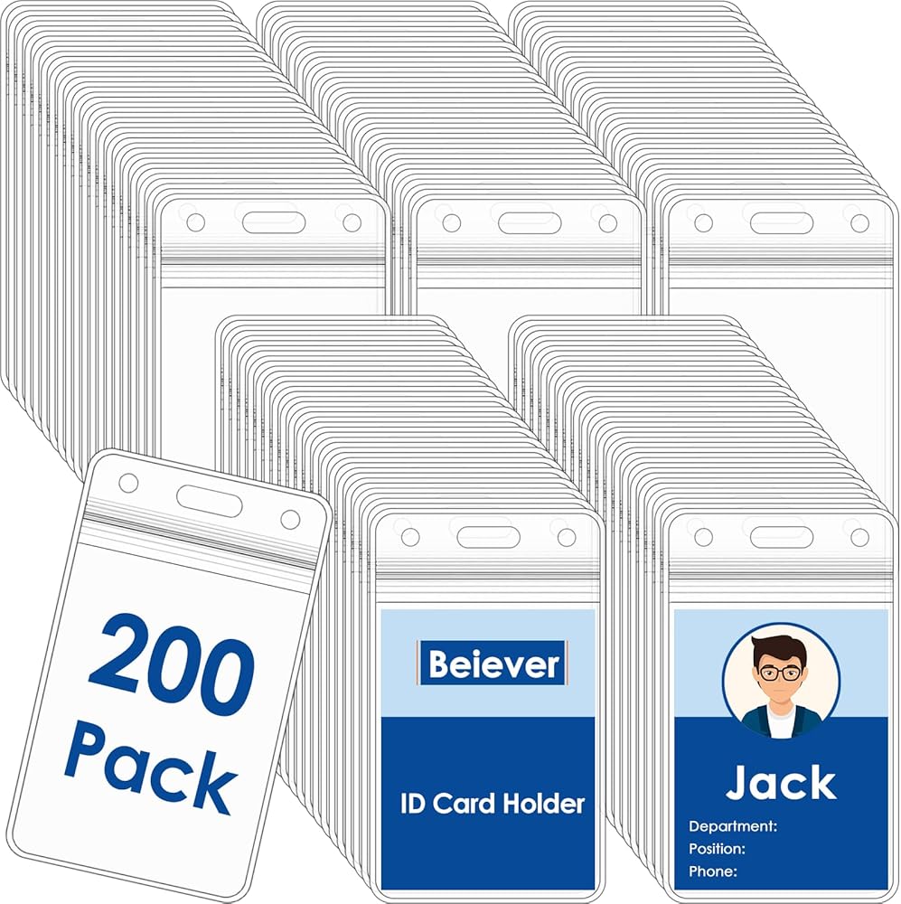 VALUE PACK: The package contains 200 pieces of badge holders, and the ID badge holder adopts a vertical design, sufficient quantity for daily use or company need. The inner dimension of these vertical badge holders are 2.48"W x 3.55"L, standard id holder size, roomy enough to hold up to 4 credit card sized cards comfortably