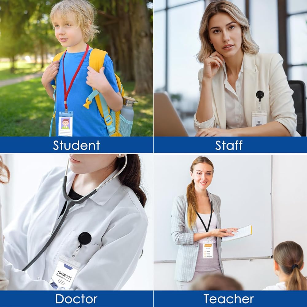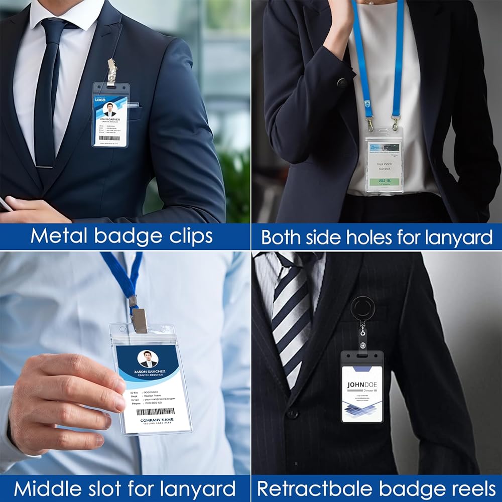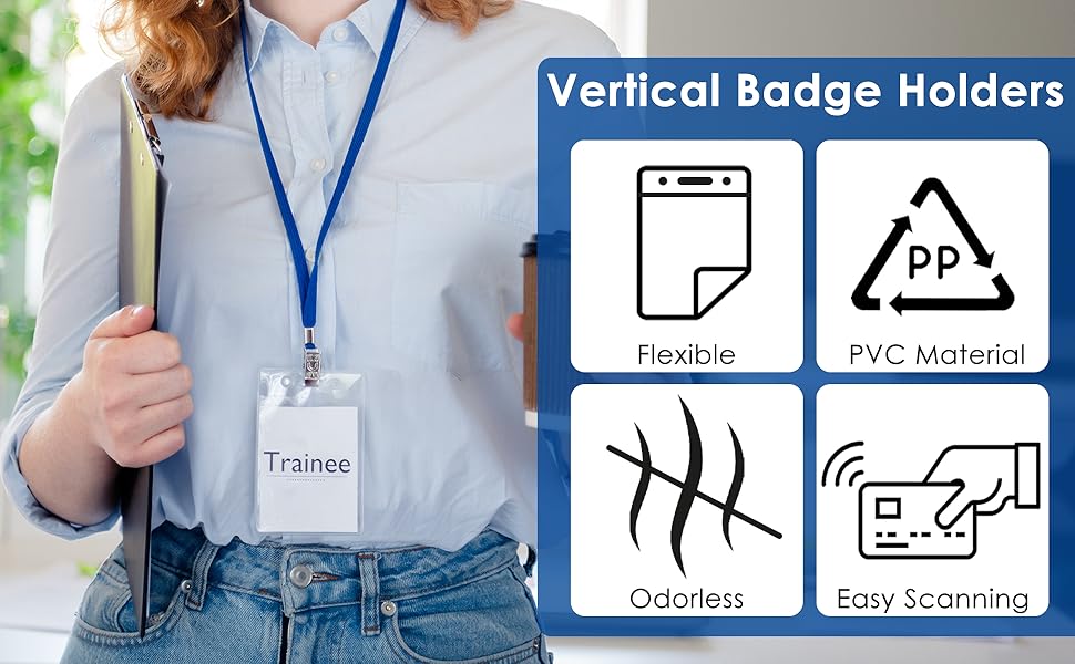 QUALITY MATERIAL: Our id card holder is made of premium PVC material, thicker than the common on the market, this clear badge holder vertical is built to last, tear resistant, crack proof, And the plastic badge holder offers complete transparency, allowing you to quickly see what's inside, without taking it out, easy to read quickly, and scan
