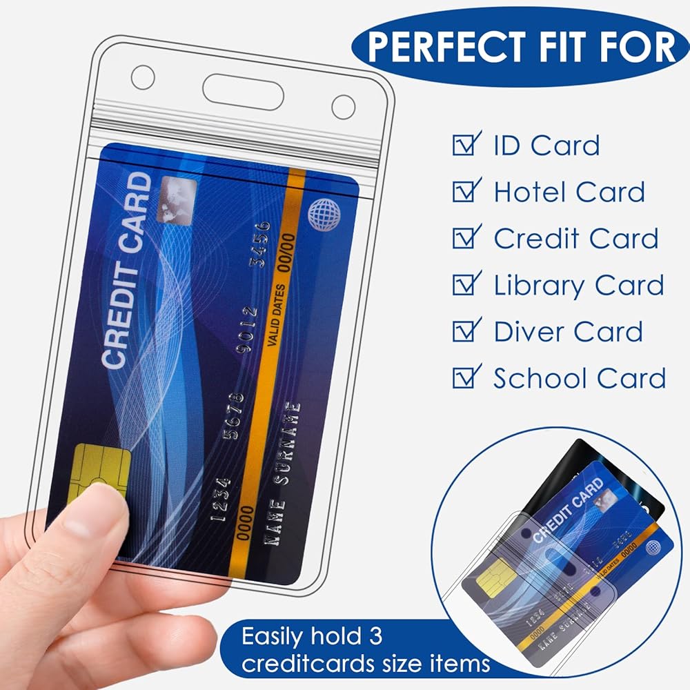 WATERPROOF AND DUSTPROOF: Our clear id badge holder are designed with resealable zipper closure that opens and closes easily, with a tight resealable zip lock that keeps out water, dust, and dirt. This plastic id badge holder is ideal for outdoor events, theme parks, and rainy days. Keep your cards dry and protected anytime, anywhere