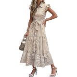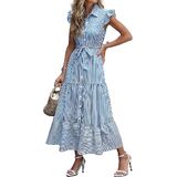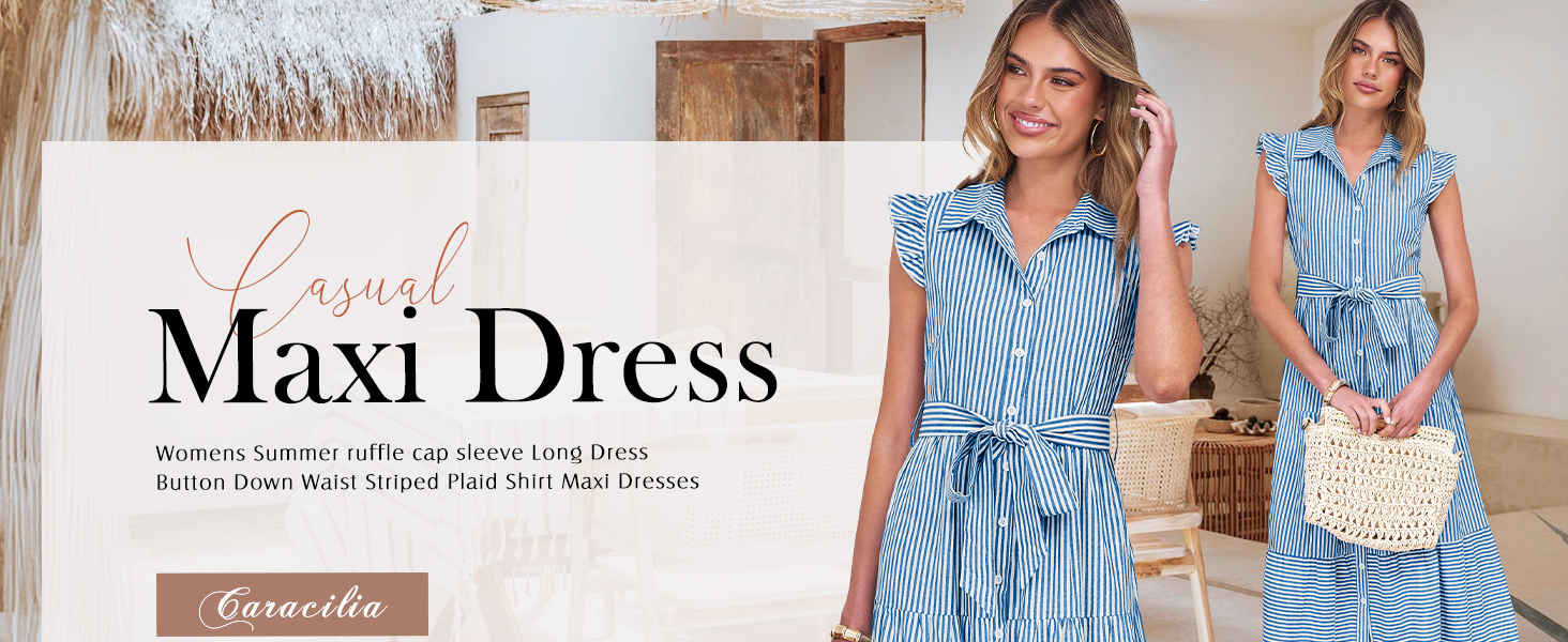 Occasion - Our ruffle cap sleeve maxi dress the perfect choice for your daily life, providing you with endless matching possibilities..This button down maxi shirt dress perfect for daily wear, weekend, home, shopping, street, beach, vacation, trip, office,holidays, walks and various other occasions in summer.