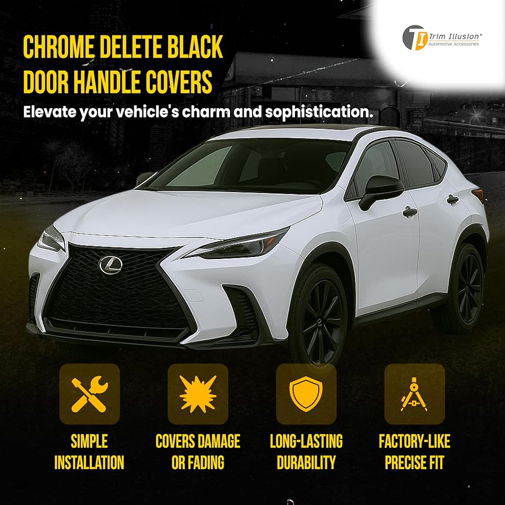 • CHROME DELETE ELEGANCE - Immerse your vehicle in sophistication with our meticulously crafted gloss black finish. The triple-plated allure of our car handle cover offers an eye-catching and elegant exterior.