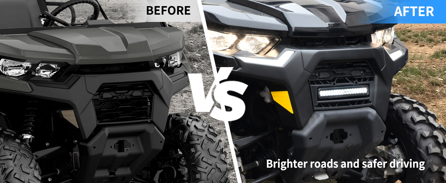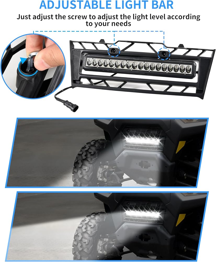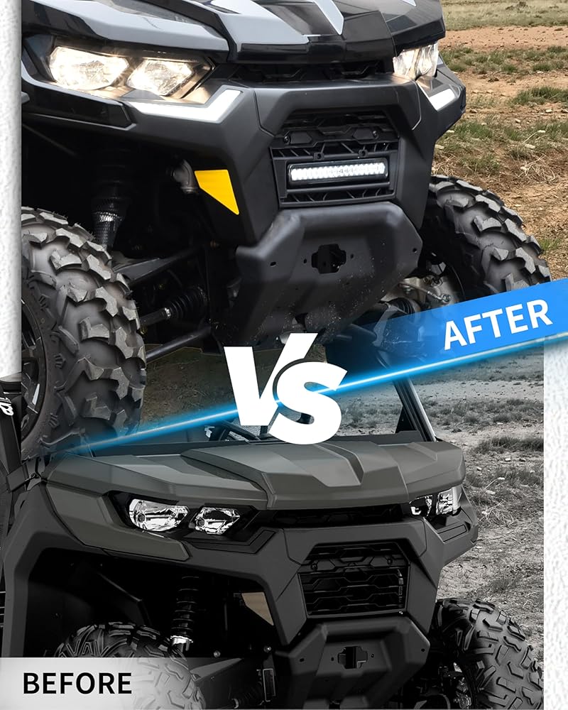 Designed for Can-Am Defender HD7, HD9, HD10 2020-2025 models, the front grille light fits precisely and integrates seamlessly into your vehicle's existing structure, not only providing enhanced radiator protection, but also adding a stylish look to your vehicle.