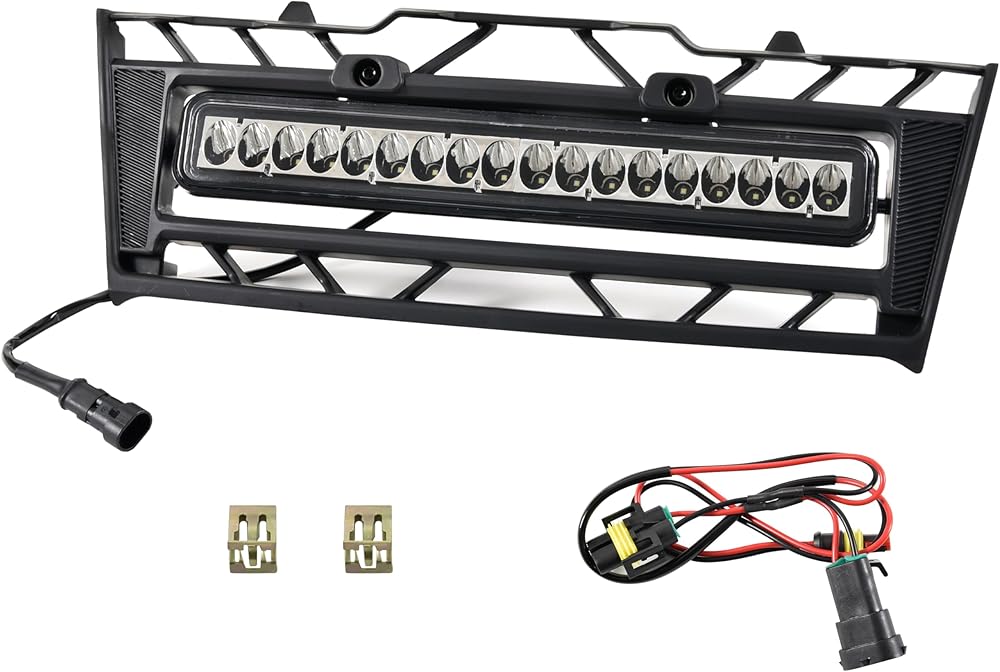 Package includes: 1pc front mesh grille with LED light, 1 set of mounting hardware and installation instructions; plug and play, easy and convenient installation; please refer to the installation guide video in the listing before installation