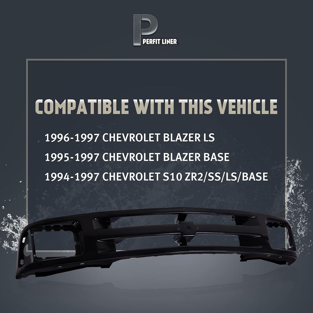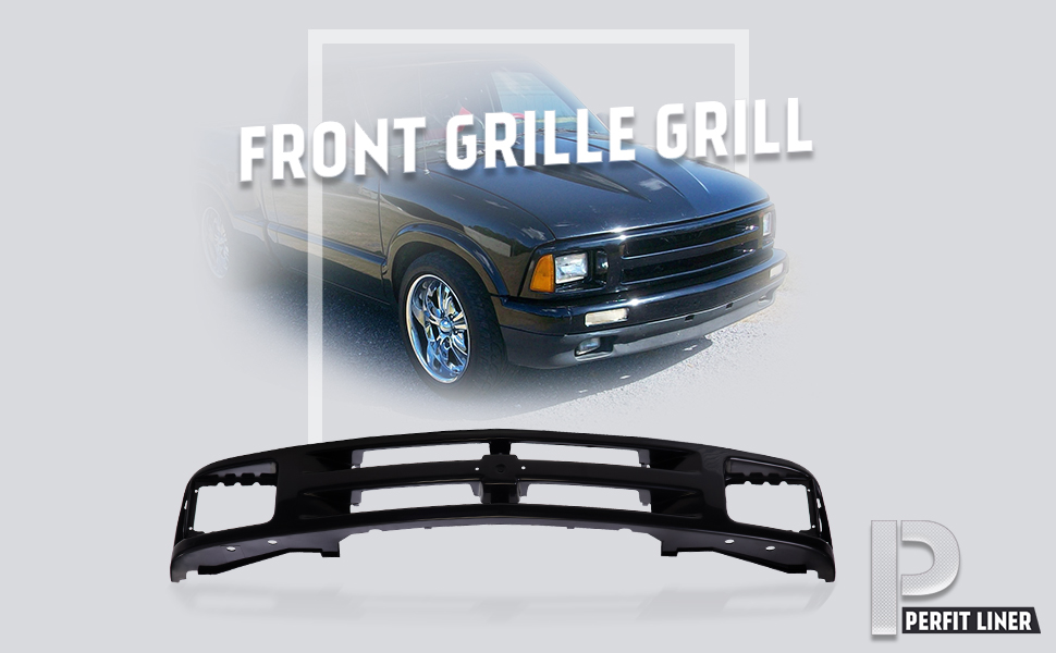 Perfit Liner New Front Primed Black Grille Grill Compatible with 1994-1997 Chevrolet S10 Pickup Truck S10 Blazer Fits Sealed Beam Head Lamp Type GM1200225 12471807