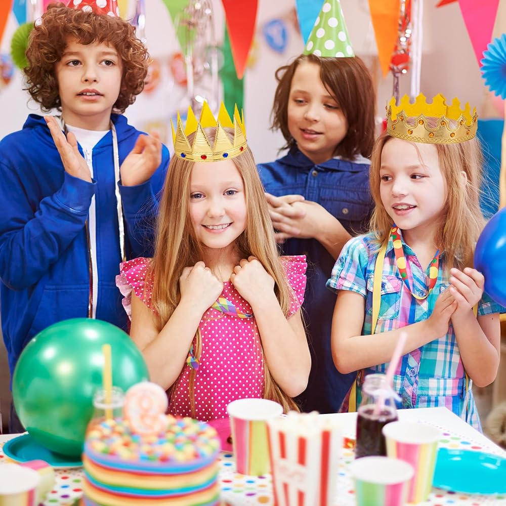 Six different sizes of golden crowns, with a soft texture and sparkling rhinestones. The hook and loop fastener closure system or elastic band is easy to wear and not easy to slip off, suitable for birthday parties, cross dressing, and festive events, lighting up the party atmosphere.