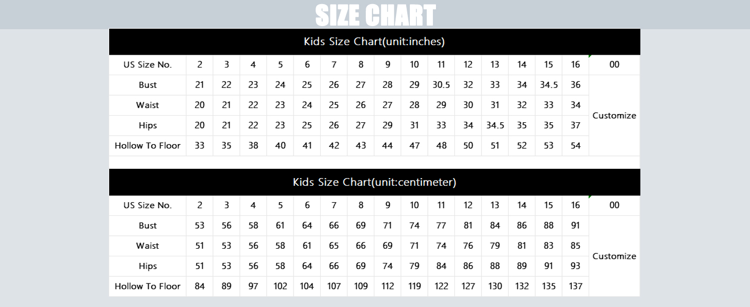 Size Tips: Please check the size chart before you place the dress.If you want to customize dress, please choose to purchase size 00. and then send me your size and we will customize it for you for free.Our store also has other flower girl dress,girl's pageant dresses,junior bridesmaid dresses and girl's formal dress for you to choose from.