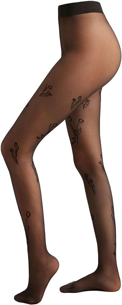 Women's 30 denier sheer tights with flock tulip print and “Love of Life” lettering