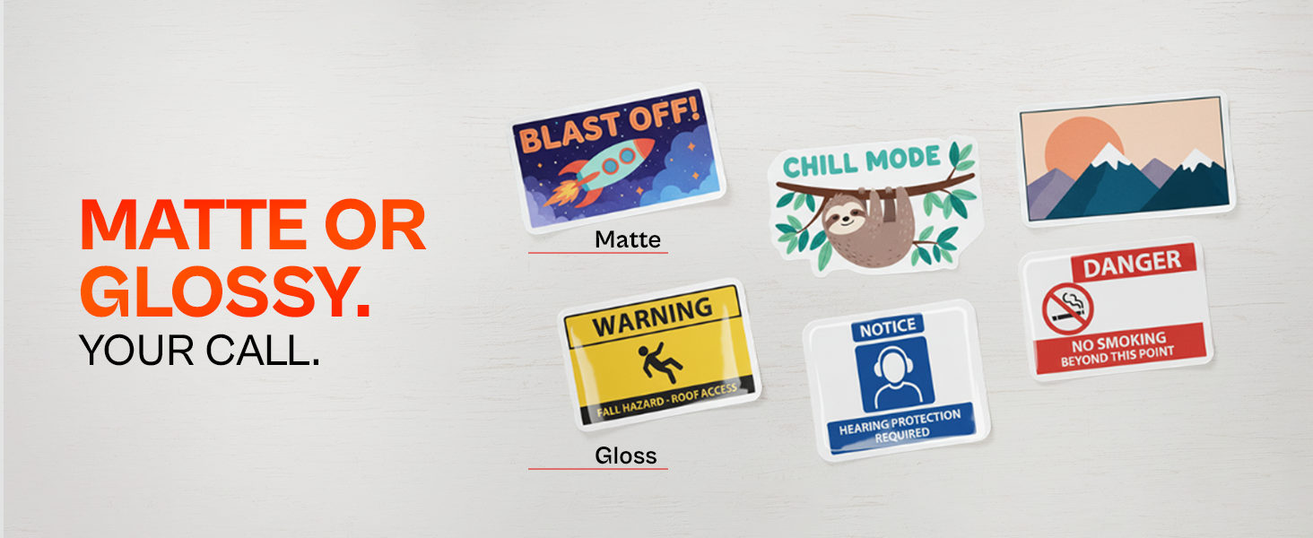 MATTE & GLOSSY FINISHES: Available in both glossy and matte options, these custom stickers let you choose a shiny or smooth finish to perfectly showcase your designs and complement any style or project.