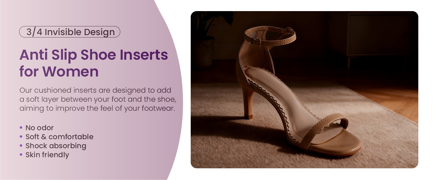 Comfortable & Discreet Design - Featuring a 3/4 length specifically designed for open-toe and strappy heels, these shoe inserts ensure full forefoot coverage without visible edges. They remain virtually invisible in most footwear, including high heels, sandals, flats, loafers, and wedges, helping you stay elegant on any occasion.
