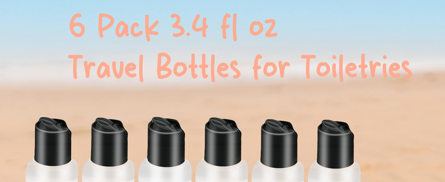 6 Pack Travel Bottles for Toiletries, 3.4oz Travel Shampoo Bottles Leak-Proof Tsa Approved Travel Size Bottle for Shampoo Conditioner and Body Wash, Clear Bottle Body