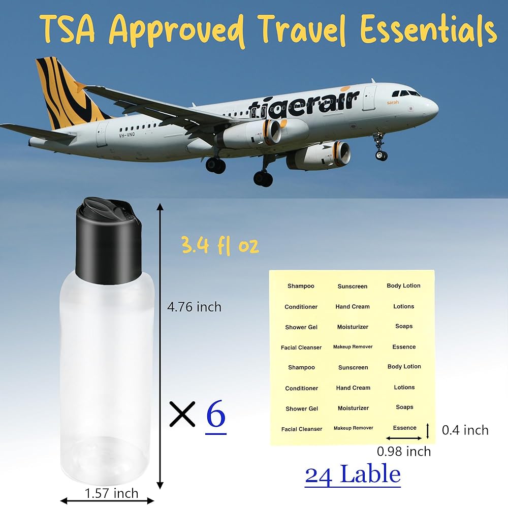 TSA-Approved for Easy Travel: With a 3.4 fl oz (100 ml) capacity per bottle, these travel shampoo bottles travel bottles for toiletries comply with TSA regulations, making them ideal for hassle-free carry-on during air travel.