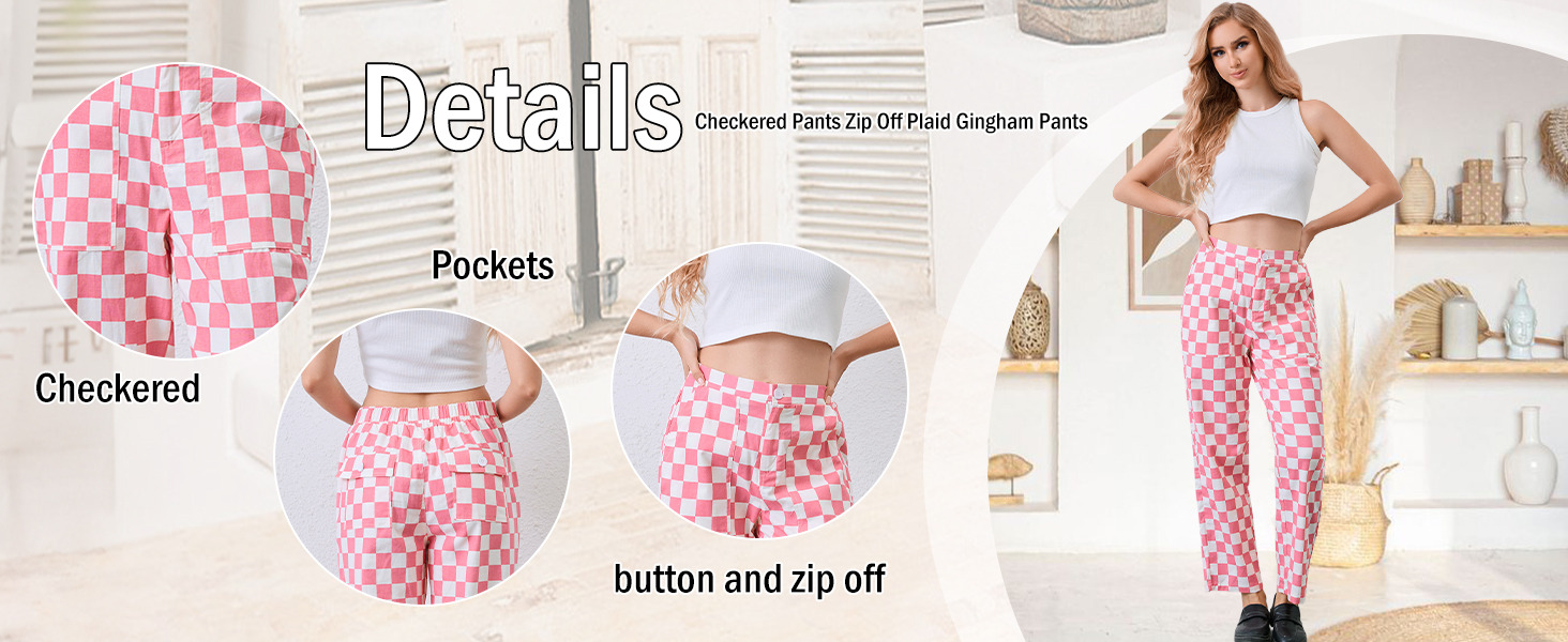 DESIGN: This gingham pants features plaid design create a classic retro style, wo pockets in the front and back of the trousers, providing plenty of storage space, waistband adjust the tightness and lift the waist line, straight leg can modify the shape of the leg and lengthen the line of the leg, button and zip off easy to pull on and take off, high rise.