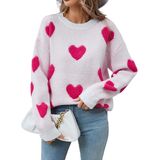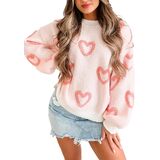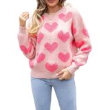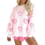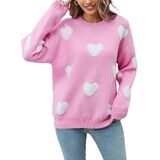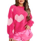 • Features: Fuzzy love sweatshirt tops, romantic valentines knitted long sleeve top, crew neck pullover tops, cute heart jumpers for women, heart pattern jumper top, drop shoulder oversized sweater, light pink or deep pink contrast color.