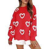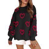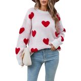 UAURORAO Fuzzy Heart Sweater for Women Cute Valentines Day Sweaters Long Sleeve Crew Neck Sweatshirt Knit Pullover Tops in Kuwait