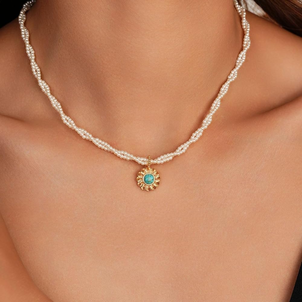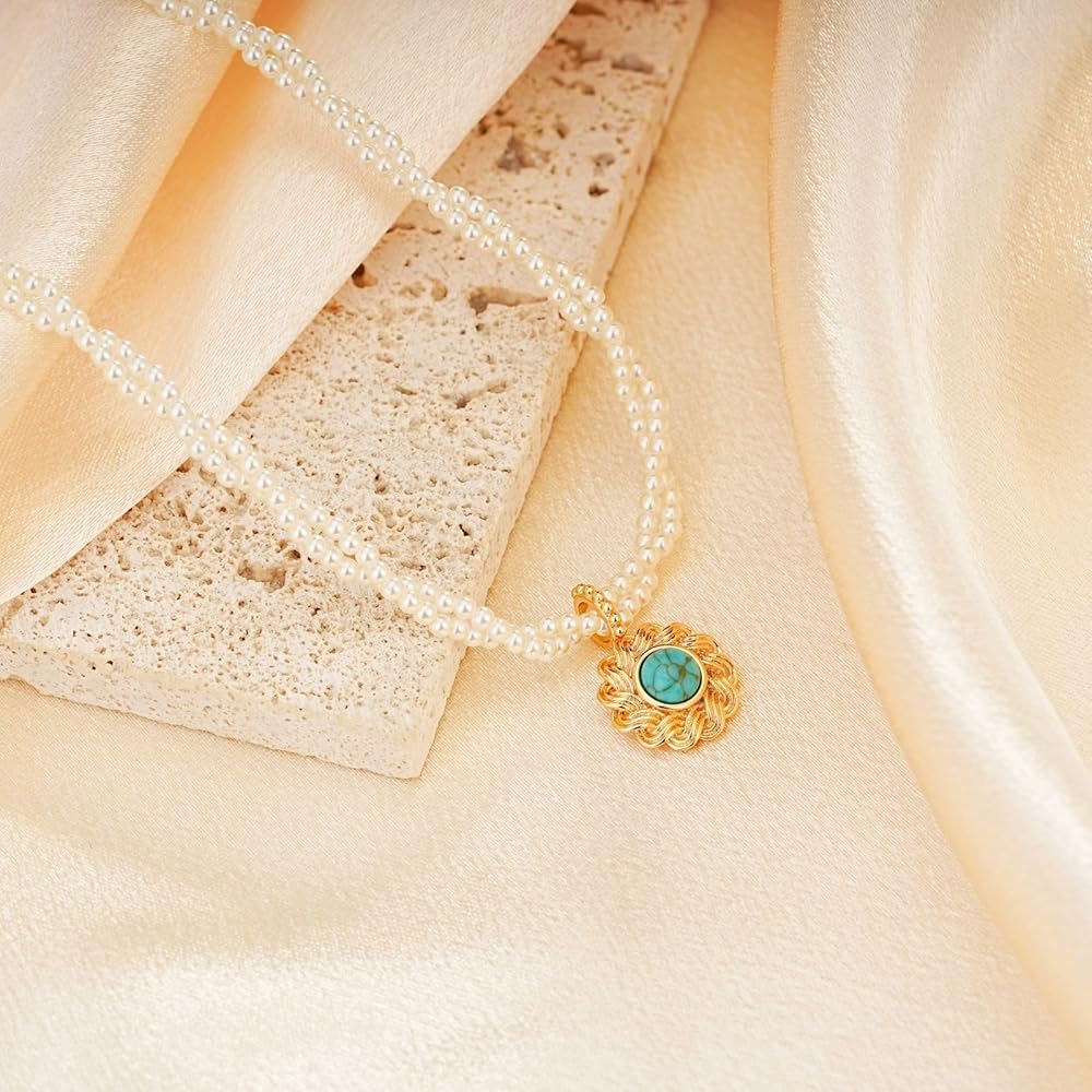 Unique Design: This exquisite pearl necklace features two pendant styles to choose from – an elegant butterfly and a delicate flower.Combining the sophistication of pearls with the beauty of turquoise, adding a unique charm to your ensemble.