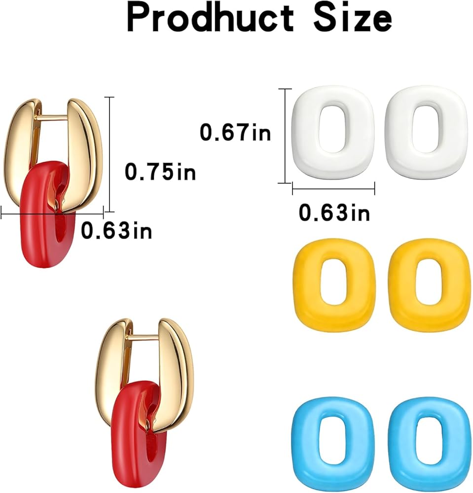 【5-in-1 DIY Versatility】 Includes 1 pair of 14K gold plated chunky hoops and 4 pairs of removable multi-color charms. Effortlessly DIY your look from minimalist gold hoops to vibrant dangles.
