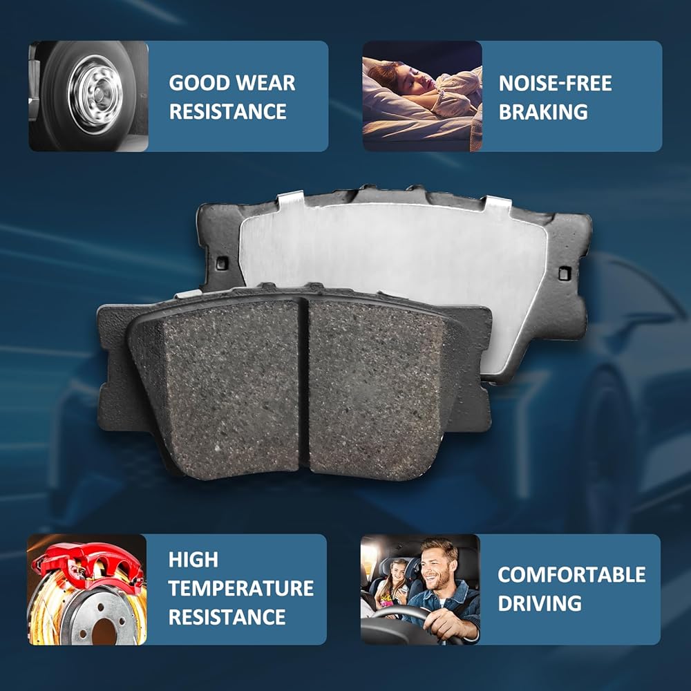 【Strong and Superior】Ultra-quiet The gasket serves as a buffer between the caliper piston and the brake pad back plate. They act to absorb vibrations, which will reduce noise,each brake pad also is treated with the scorch friction process to help lower break-in time,ensuring a longer lifespan for your vehicle's braking system.