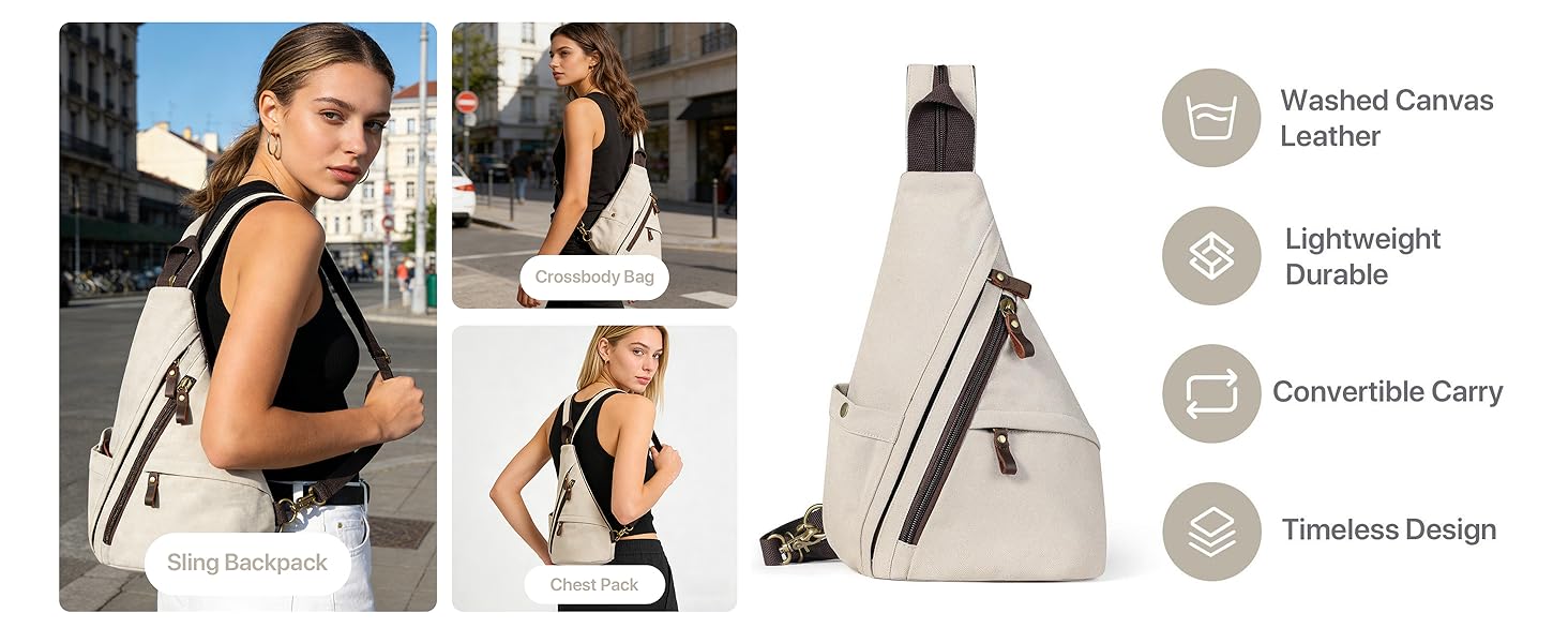 VERSATILE 3-IN-1 CONVERTIBLE DESIGN: Experience ultimate adaptability with this sling bag that effortlessly transforms into a crossbody, chest bag, or backpack. Ideal for travel, hiking, daily commute, work, school, or casual campus use, this bag seamlessly adapts to every scene of your life.