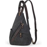 Vintage Canvas Sling Bag for Men and Women, 3-in-1 Convertible Crossbody Backpack Chest Bag with Genuine Leather Zipper, Large Capacity Travel Daypack (Gray)