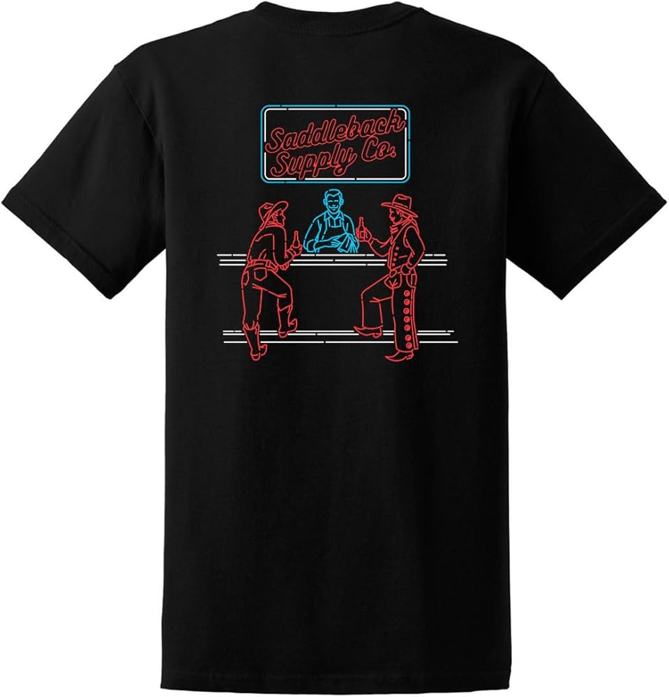 Infuse color into your casual wardrobe with Saddleback Supply's Men's Neon Lights Logo Heavy Cotton Tees. Its vibrant neon Western logo distinguishes you from the crowd every day. Constructed from pure cotton, promising comfort and resilience. Rib-knit collar guarantees the perfect fit, complimented by a shoulder-to-shoulder back neck tape for added support. Try this sensational tee now!