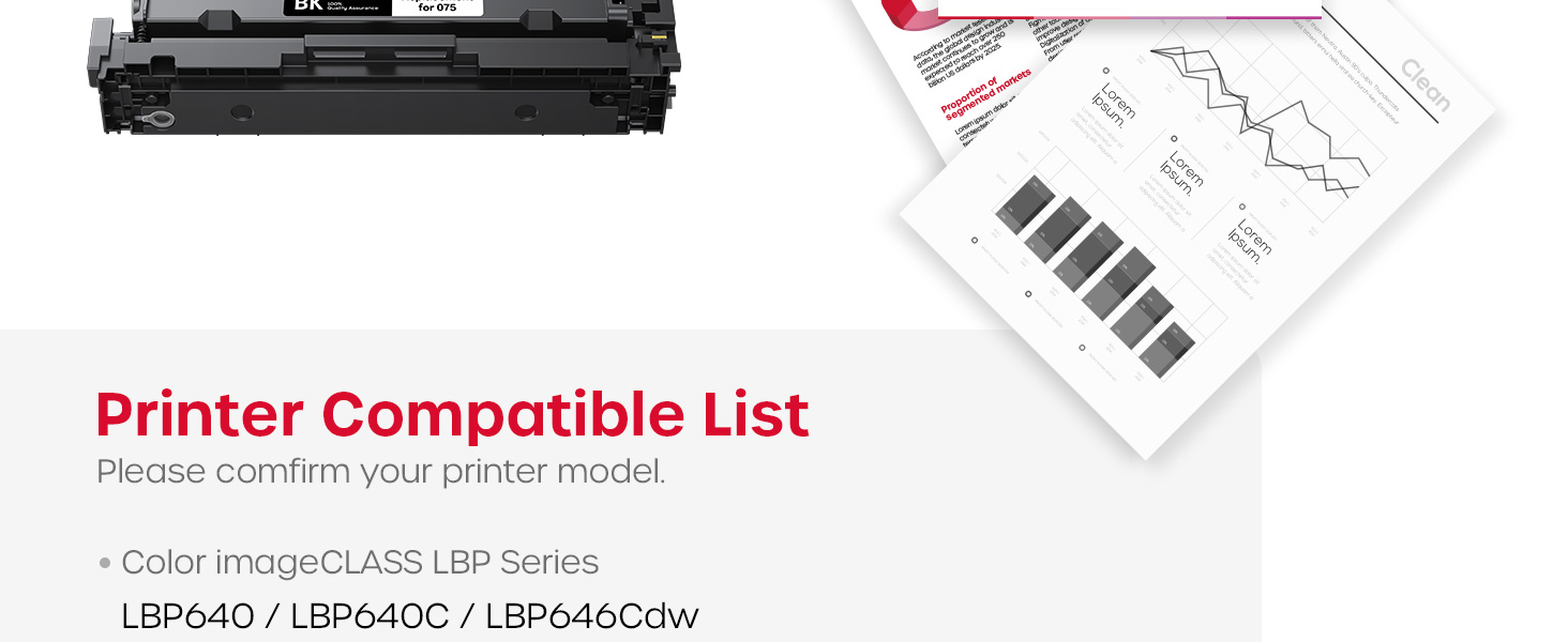 - With Built-In Chip: Each 075 toner cartridge is equipped with an intelligent chip, so there is no need to worry about compatibility issues.