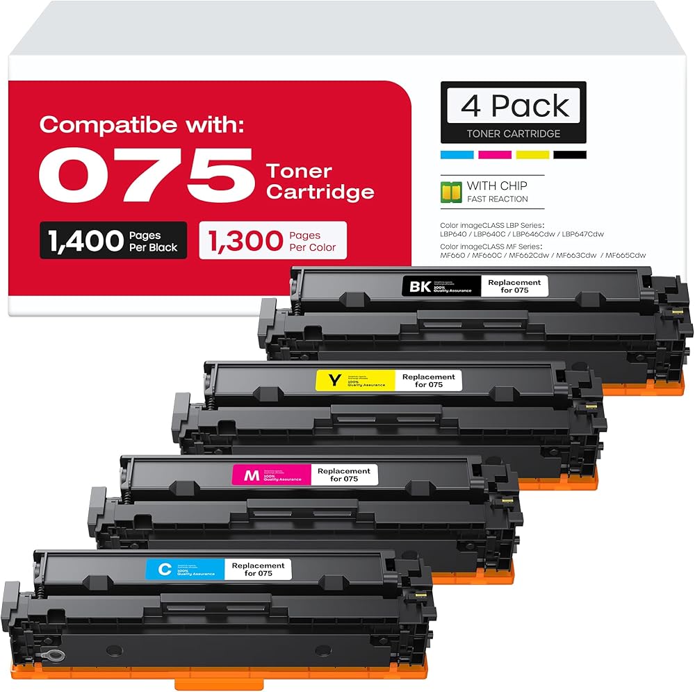 - Package Includes: 075 Toner Cartridge Combo Pack(1x black, 1x cyan, 1x yellow, 1x magenta toner)