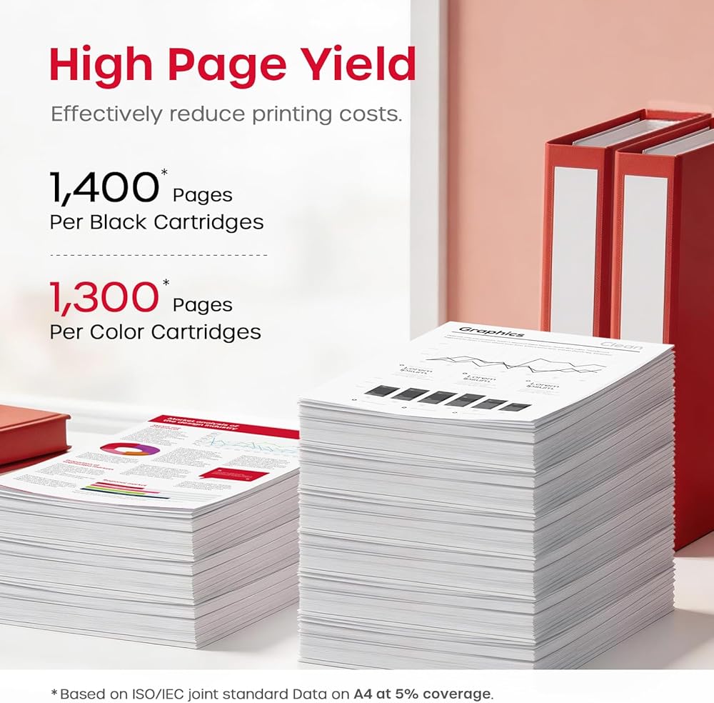 - High Page Yield: Up to 1,300 pages for the 075 black toner cartridge and 1,300 pages per 075 color toner cartridge(Letter A4, at 5% coverage).