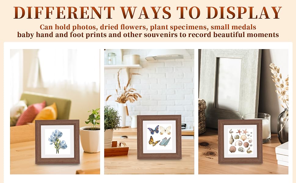 ✿【Mini Shadow Box Frame】: Our small frames are suitable for 2x3 inch photos. With a 0.6 inch hollow depth, they can hold small medals, mini bouquets, baby hand and foot prints, tickets, and souvenirs, capturing beautiful and precious moments