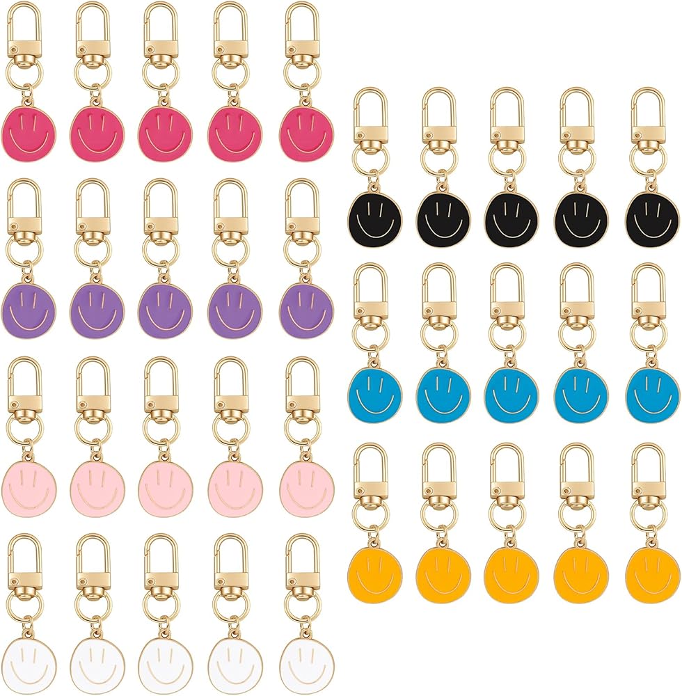 Vibrant Color Assortment: Brighten your day with our smiley face keychains in seven vibrant hues: yellow, blue, purple, black, white, red, and pink. Each cheerful smile adds a touch of whimsy and style to your keys, making them a delightful fashion statement that sparks joy wherever you go. Generous Quantity and Size: You'll receive 35 durable smile face keychains, with 5 pieces per color for ample sharing. At 58mm long and charms measuring 20mm, they're perfectly sized for crafting, key organizing, or adding fun accents to bags and zippers with ease. Premium Alloy Enamel Material: Made from high-quality alloy and enamel, these keychains are both sturdy and lightweight for daily wear. The colors stay vividly bright without fading, and the secure clasp ensures the smiley charms won't slip off, offering long-lasting enjoyment and reliability. Ideal Gift Choice: These cute smile face keychains make heartfelt gifts for birthdays, holidays like Christmas and Mother's Day, or just because. Their universal appeal brings smiles to friends, family, and anyone who appreciates a little joy in daily life, spreading positivity effortlessly. Multi Occasion Utility: From office desks to gym bags, home use to mall trips, these keychains adapt to any setting with versatile flair. Choose a color to match your mood and add a playful, decorative touch to your everyday carry, enhancing both function and fun.