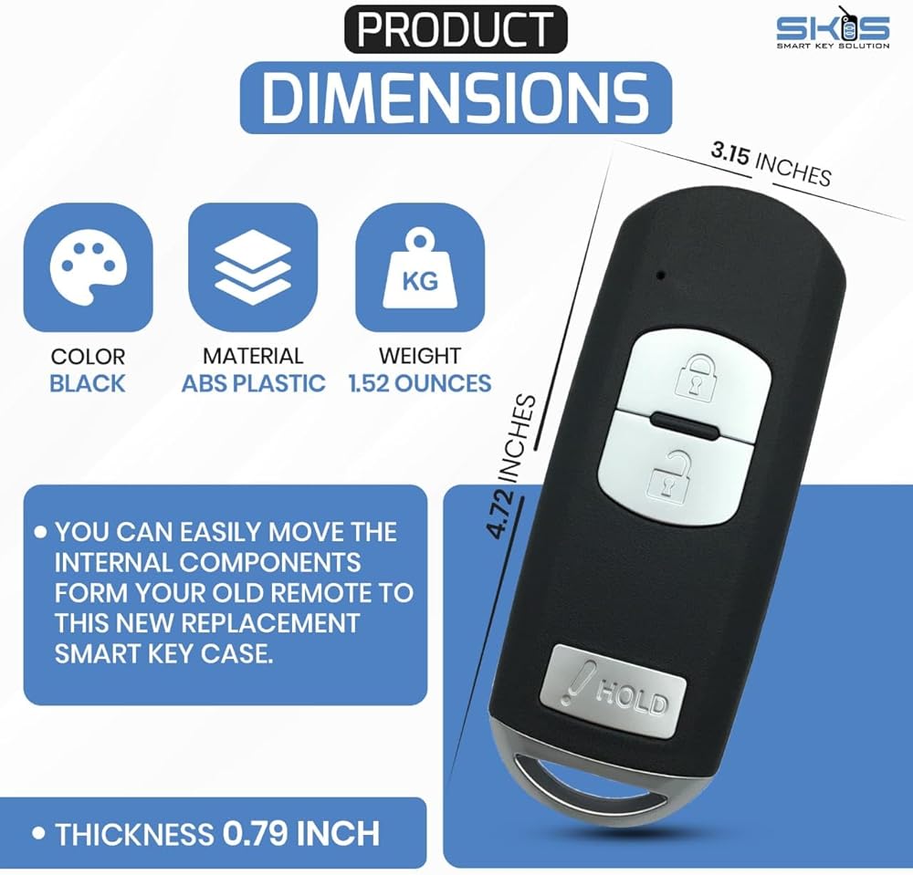 Key Fob Shell Case Replacement Fits for Mazda 3 5 CX3 CX5 CX7 CX9 2012-2020 Keyless Entry Remote Control 3 Button Pad Key Cover