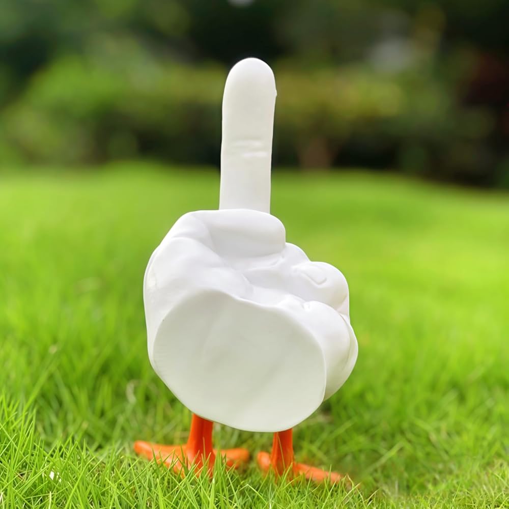 Middle Finger Duck Decoration: Middle finger duck sculptureswith its hand confidently raised in a defiant gesture, turns heads and sparkconversations, making it a standout addition to your desk, shelf, or any spot that needs a playful vib