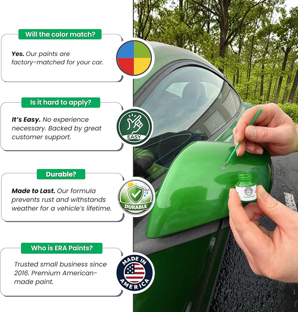 MADE IN USA – American-formulated paint with American materials. One jar covers multiple small chips and scratches; larger repairs may require additional product. Questions? Our team helps with paint code lookup and application guidance.