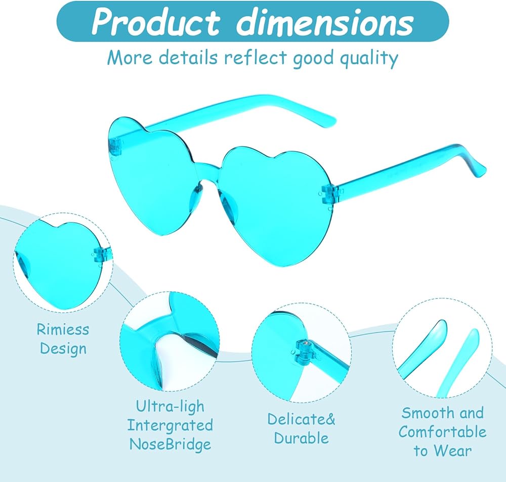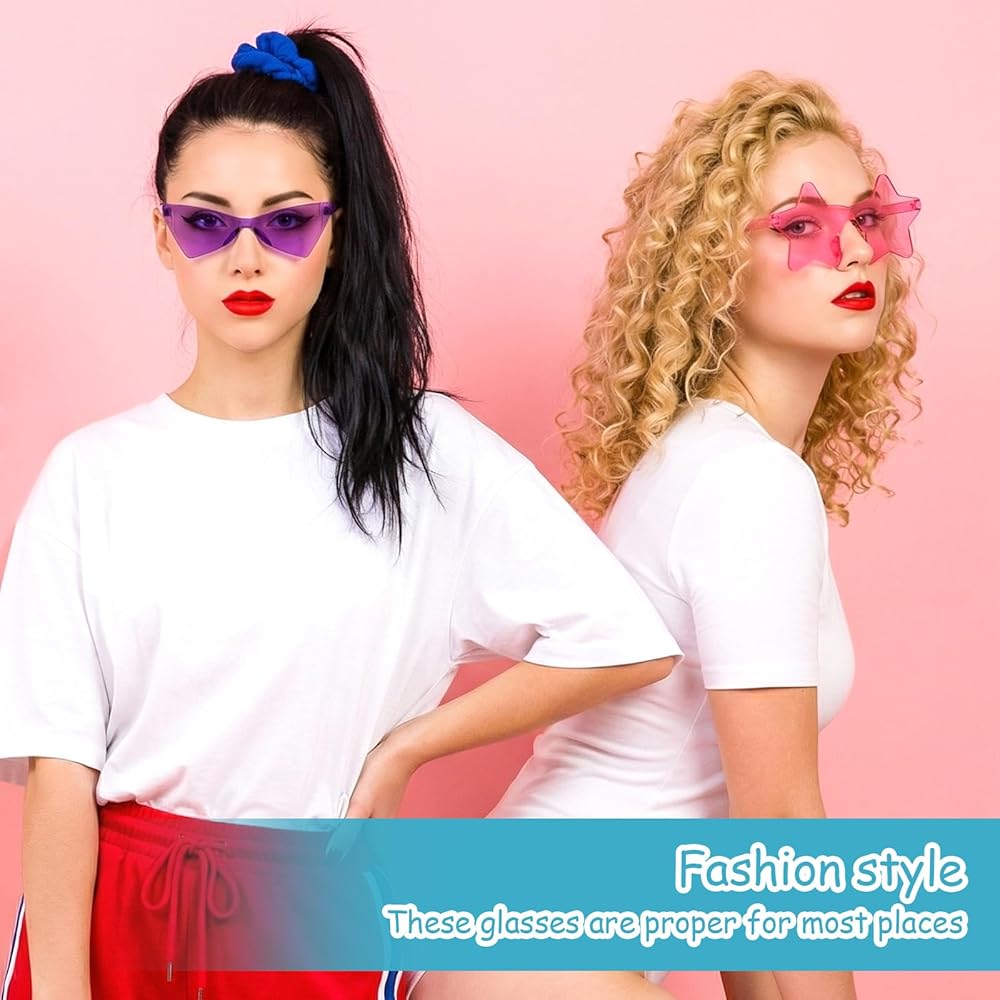 [Durable Material] Crafted from high-quality polycarbonate, these funny glasses are lightweight yet durable, providing a comfortable fit for long wear. The colored rimless glasses are designed to reduce glare and visual fatigue, making them perfect party sunglasses for bulk purchases.