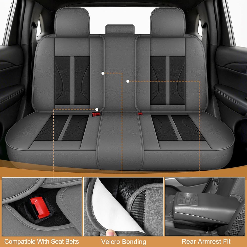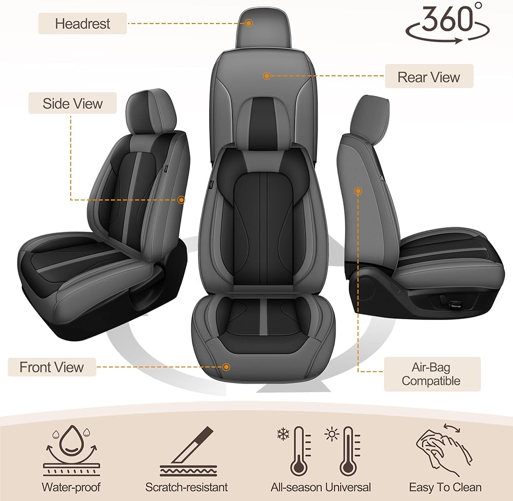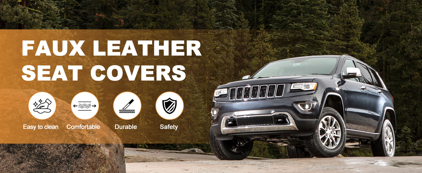 🚙【Faux Leather Seat Covers】This automotive seat cover is made of quality faux leather material with good toughness, scratch-resistant and wear-resistant, effectively preventing sharp objects, keys, pet claws from scratching the seats. Waterproof and dustproof, easy to clean, keep the car interior clean and tidy.
