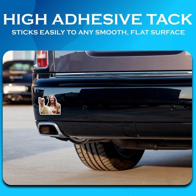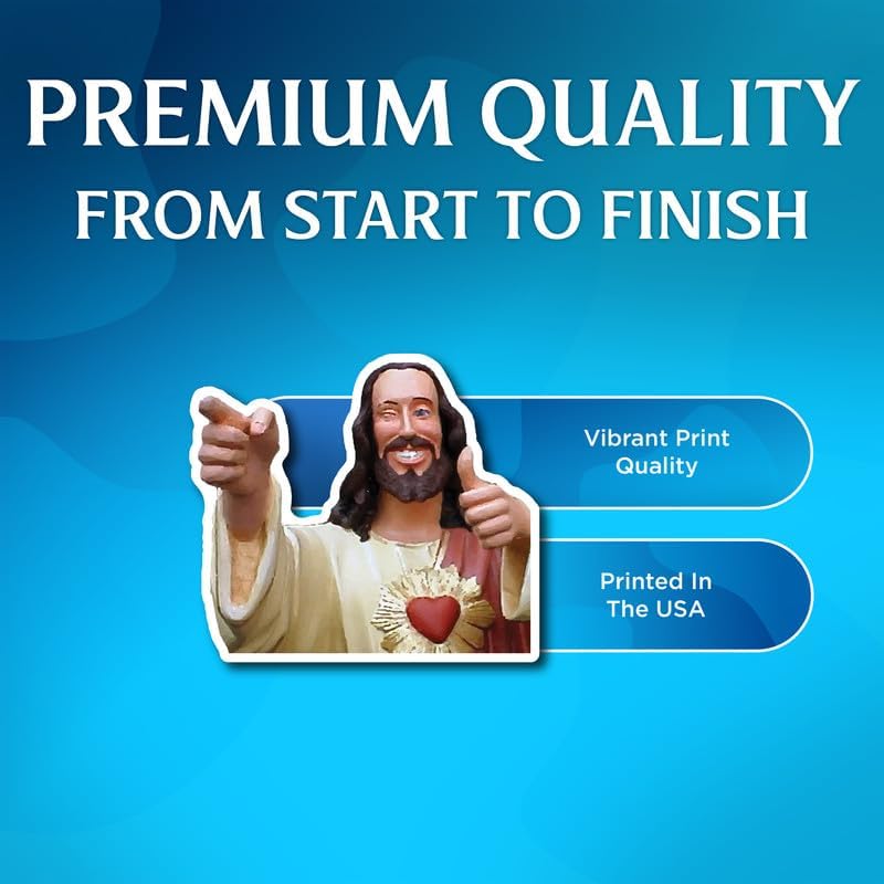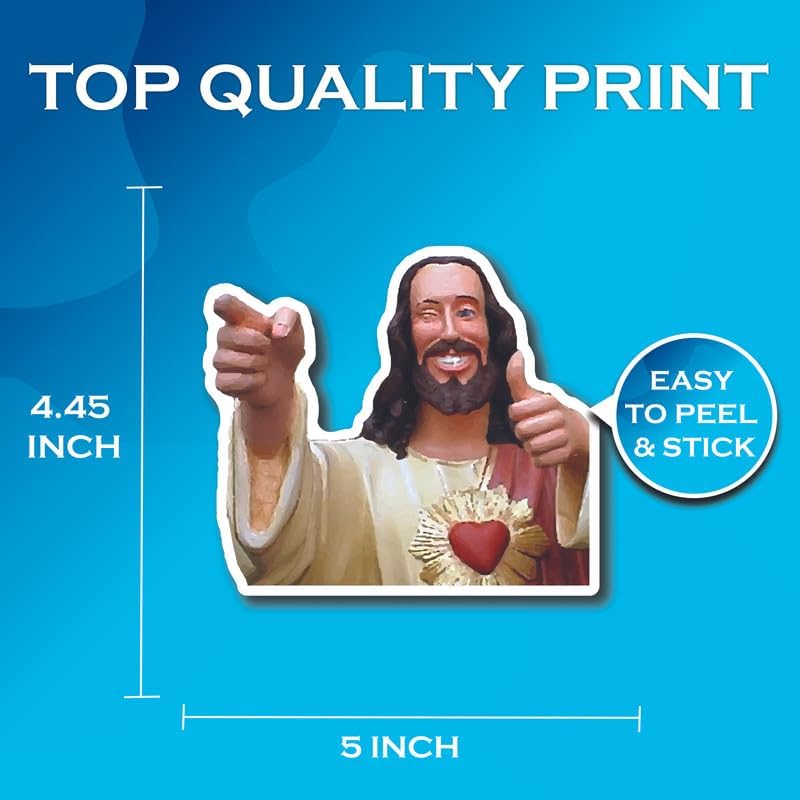 Cool Jesus Sticker - Smiling Jesus Sticker - Pointing Jesus - Christian Meme - Premium Quality Vinyl Bumper Stickers 2-Pack | 5-Inch on Widest Side | Made in USA - FHJ590