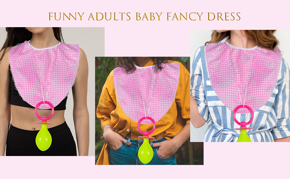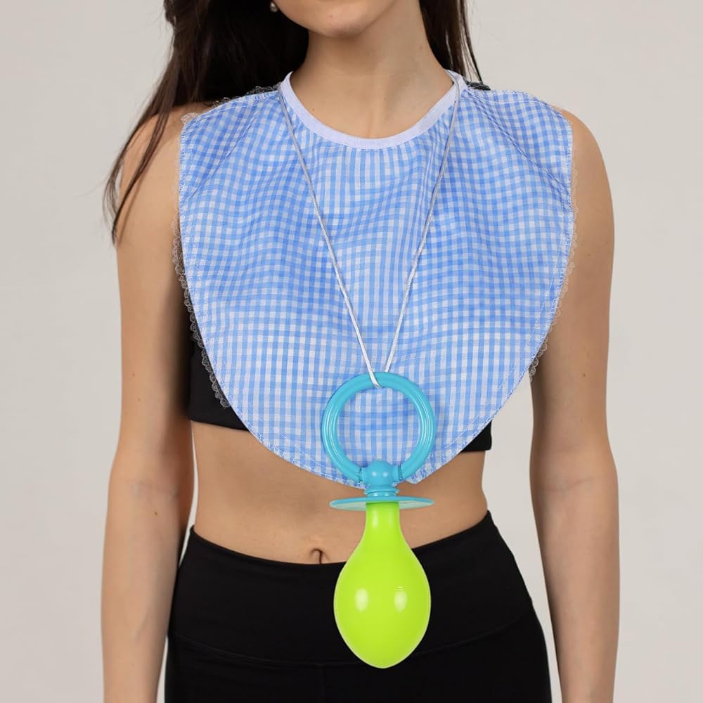 Complete and Reusable Set: Includes pacifier, bib, and hat all washable and reusable, providing a convenient and eco-friendly option for repeated use in funny cosplay or themed party settings