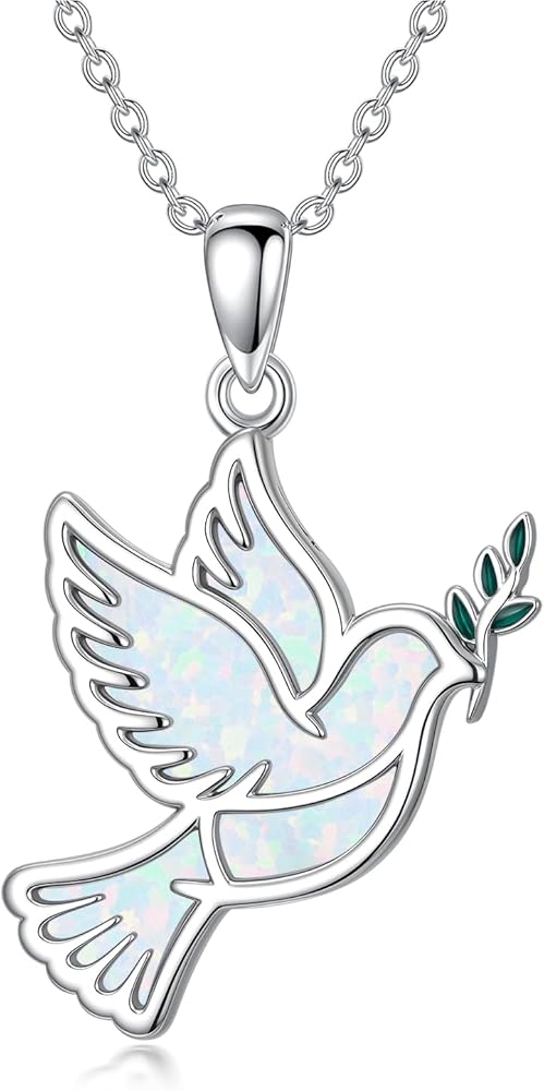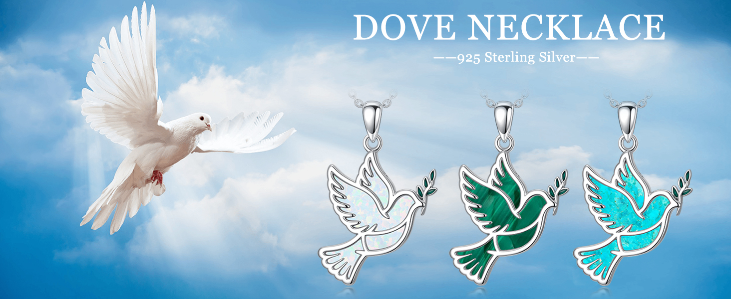 [Sterling Silver Holy Spirit Necklace]: The dove necklace is made of S925 sterling silver, hypoallergenic, safer. The holy spirit pendant is inlaid with White Opal, more refined